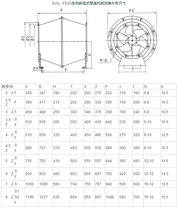 SJG系列斜流式管道風機除具有上述獨特的空氣動力特性以外,其結構形式也使得工程設計和安裝施工工作大大的簡化了。它的進風方向和出風方向位于一條軸線上,且進出口尺寸相同,并有與相同直徑的風管相聯接的法蘭,安裝十分方便,它不必像離心風機那樣,安裝時要使風管有一個90度的轉折、因而占地少,不影響管道布置和管道走向,適宜于為直管道加壓和送、排風。對于空間狹小的機房,尤其顯示出它的機構緊湊的優越性。